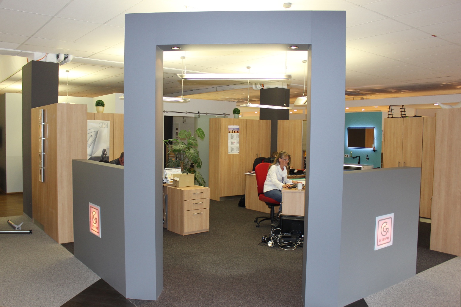 Der Empfangsbereich wurde komplett mit einem Singlecolor Design in der Farbe grau passend zum Firmen CI angepasst. Die Mitarbeiter konnten während der Montage ohne Störungen telefonieren und weiterarbeiten.